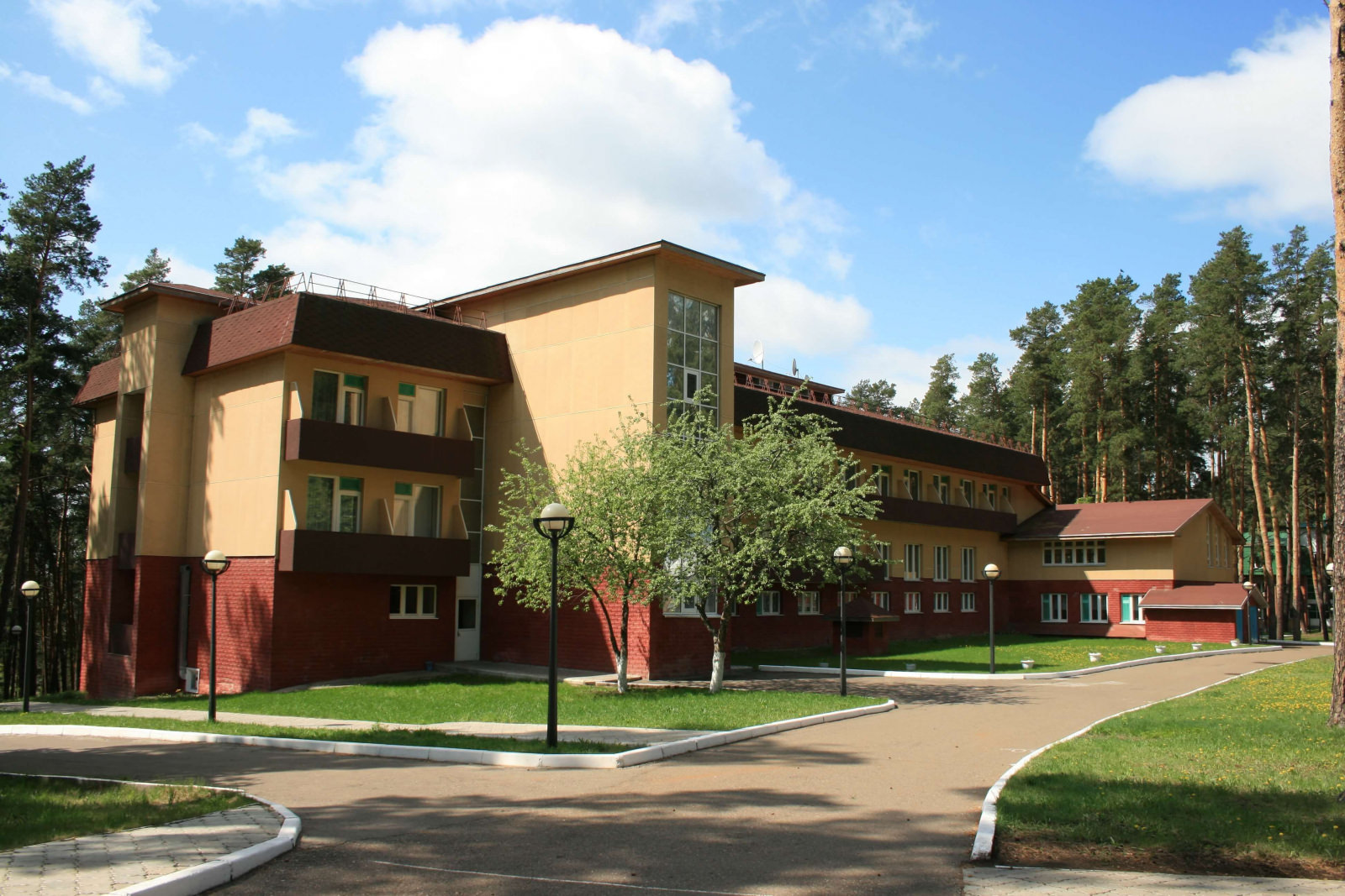 Оздоровительный комплекс «Космос» расположен на территории Национального парка «Нижняя Кама» в 9 километрах от центра Елабуги. В 15 минутах езды — автодорога М-4 «Волга», в 50 километрах разместился аэропорт Нижнекамска. Санаторий занимает благоустроенную закрытую территорию в экологически чистой местности среди хвойного лесопарка. Здравница включает в себя 5 корпусов, в главном находятся номера и лечебная база, в других — оздоровительные лагеря. В распоряжении гостей номера разных категорий комфорта с удобствами, в том числе есть комнаты, предназначенные для размещения маломобильных гостей. На территории санатория работает столовая, где отдыхающие могут заказать комплексное питание. В распоряжении гостей крытый бассейн, спортивный и тренажерные залы. Для досуга организована зона отдыха со зрительными залами, караоке, танцполом, бильярдными комнатами и настольным теннисом. При желании отдыхающие могут отправиться на речные или конные прогулки. Зимой в санатории прокладываются лыжные трассы, а летом — терренкуры. Для проведения деловых мероприятий, праздников, выставок предусмотрен конференц-зал, оснащенный звуковой аппаратурой и мультимедийным проектором. Многопрофильный санаторий обладает хорошей лечебной и диагностической базой. Отдыхающим предлагаются различные оздоровительные программы и процедуры, среди которых лечебные йодобромные, хвойные, углекислые, шалфейные ванны, душ Шарко, сеансы ручного массажа, парафионотерапия, аппаратная физиотерапия и альтернативные методы лечения.